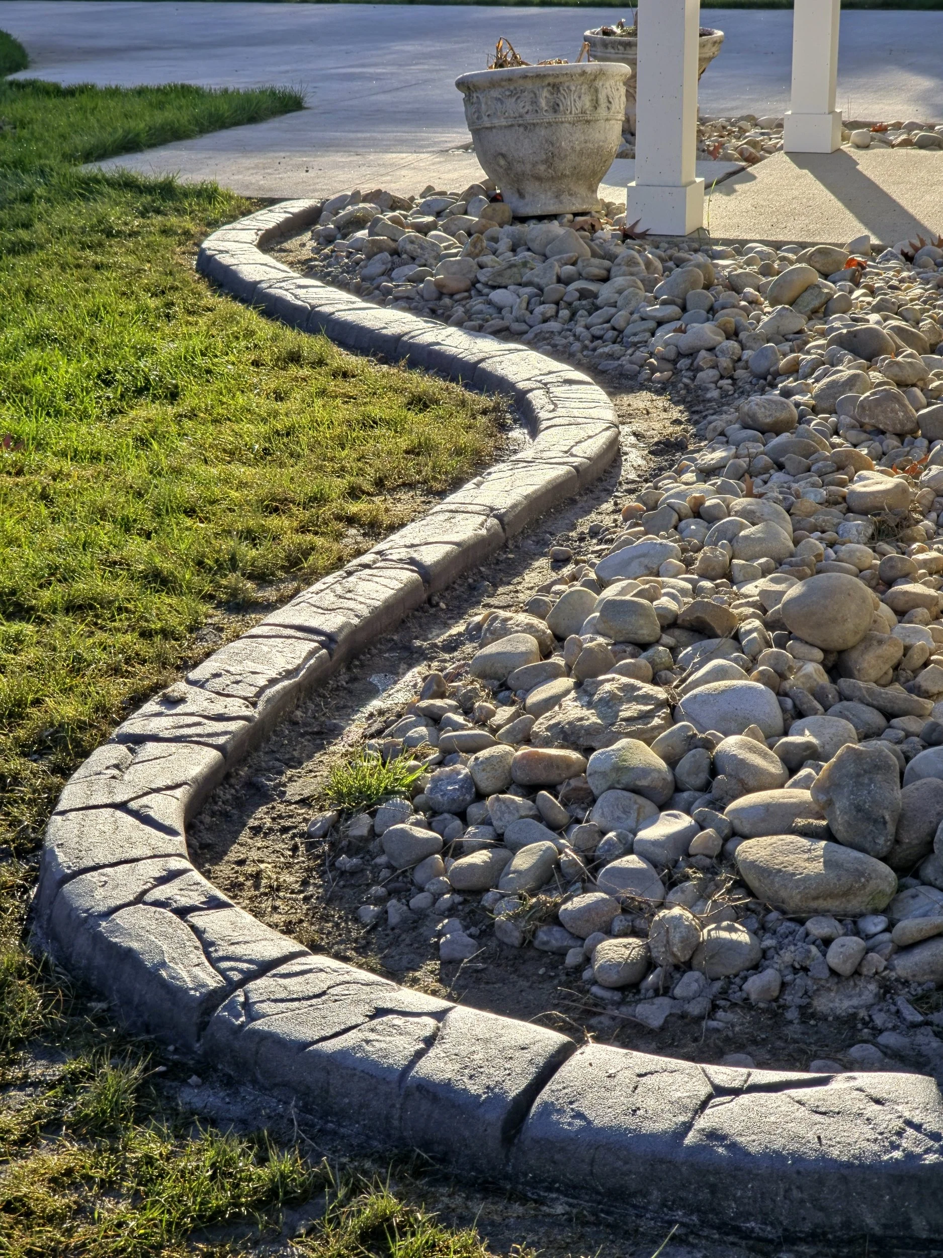 Decorative concrete curbing adds clean, long-lasting definition to landscapes, driveways, and garden beds. Cast in place and formed on-site, it mimics natural stone, brick, or sculpted edges while resisting erosion, weeds, and routine maintenance. Available in a variety of profiles, colors, and finishes, decorative curbing creates crisp lines that highlight plantings, control mulch, and improve drainage. Durable and cost-effective, it enhances curb appeal and property value with a finished, professional look that lasts for years.